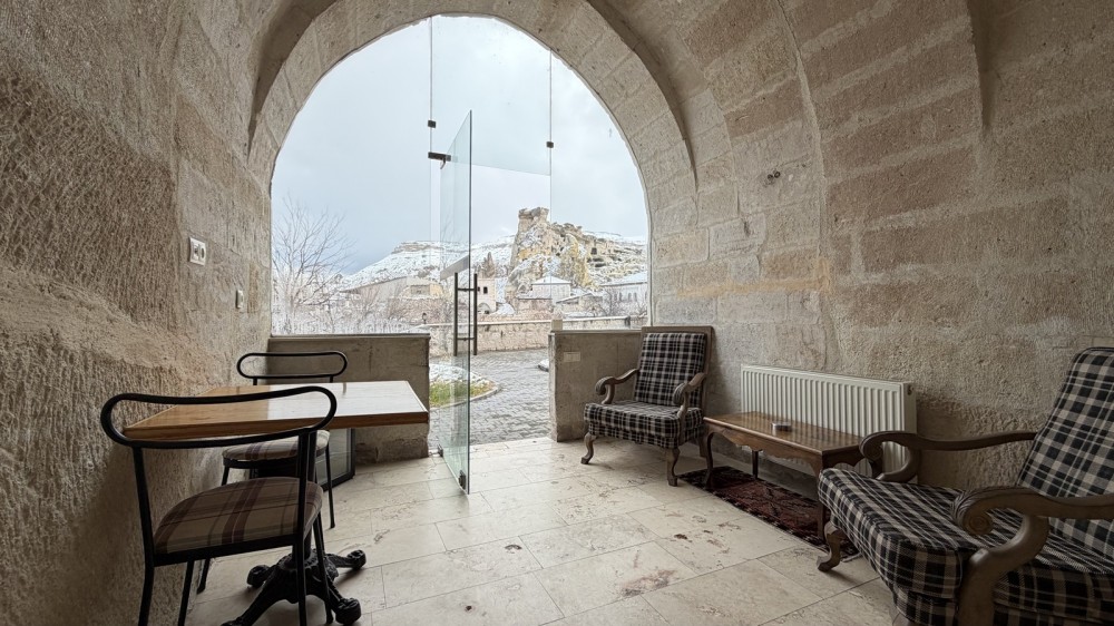 The Standard Cave Room reflects the authentic cave architecture of Cappadocia, offering a comfortable and traditional stay. Featuring a private Turkish bath and veranda seating area, guests can enjoy peaceful views of the garden, Cavusin Castle and hot air balloons at sunrise.